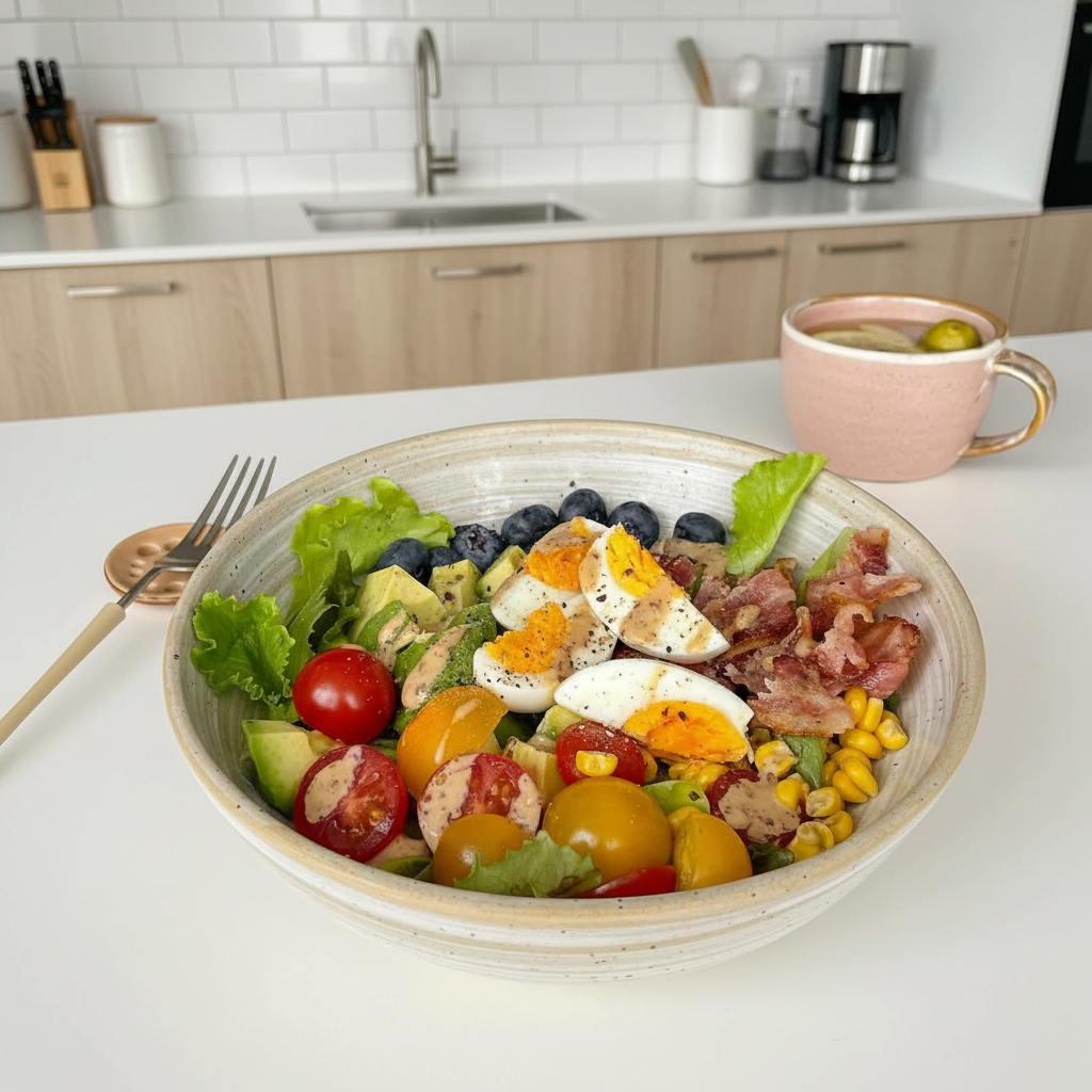- Prep Ahead: You can prepare all the salad components (chop veggies, cook bacon, boil eggs) and store them separately in airtight containers in the refrigerator for up to 2-3 days. Whisk the dressing just before serving. Assemble the bowl right before eating to prevent the lettuce from wilting and the avocado from browning.