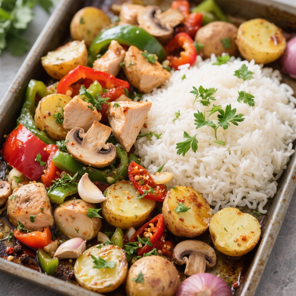 This Spicy Chicken Stir-Fry with Herb Potatoes and Fluffy Rice brings together bold flavors, crisp vegetables, hearty roasted potatoes, and perfectly cooked rice for a satisfying, well-balanced meal. The dish blends everyday pantry spices with fresh ingredients to create a comforting and versatile dinner that works for weeknights, meal prep, or family gatherings. Each component is simple on its own, but together they create a complete and vibrant plate.