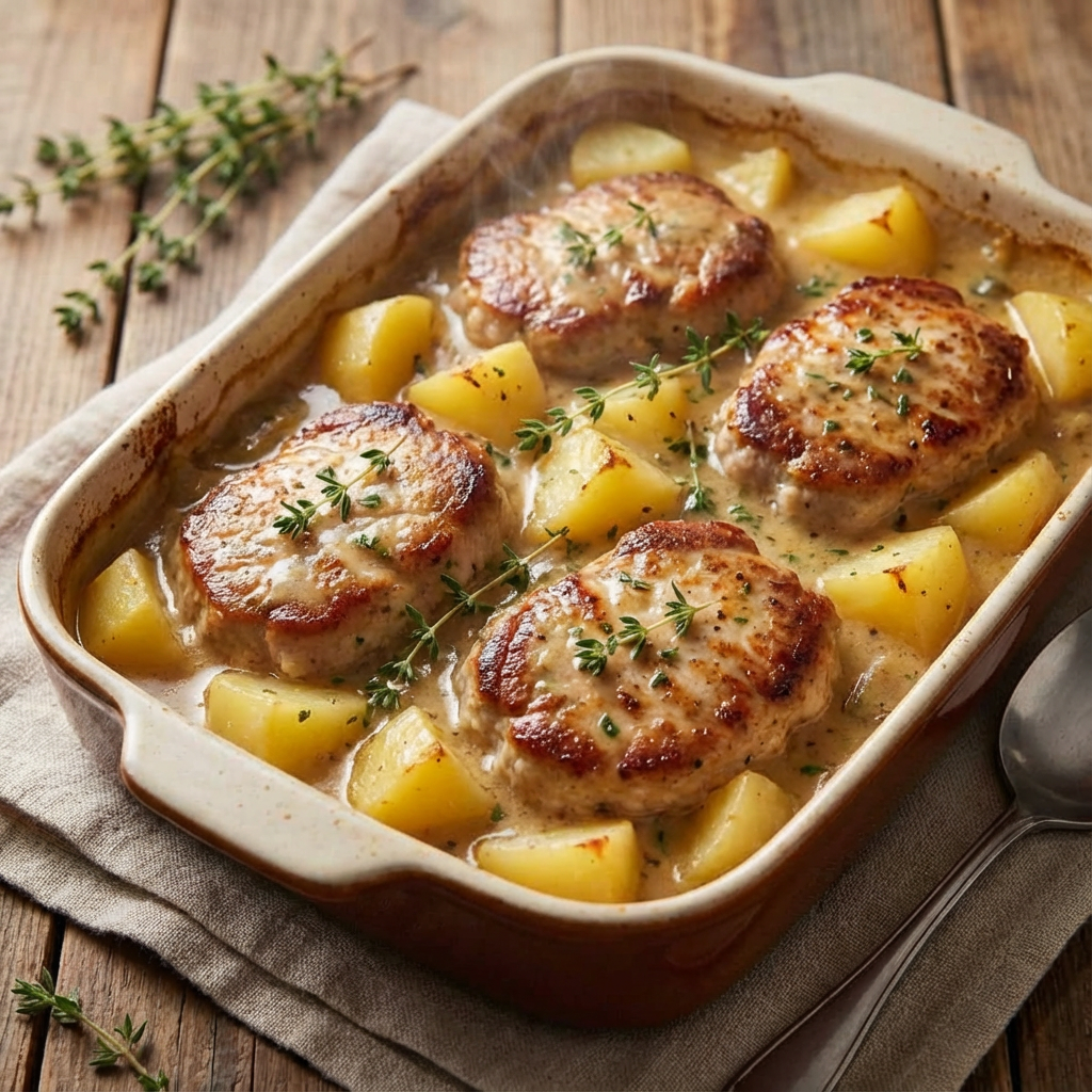 This Smothered Pork Chops with Potatoes in Gravy dish is the epitome of comfort food, a hearty and soulful meal that brings warmth and satisfaction to any table. Juicy, tender pork chops are perfectly seared to lock in their flavor, then slowly simmered with tender chunks of potato in a rich, savory gravy. The addition of aromatic onions and bell peppers (optional but highly recommended!) elevates the depth of flavor, creating a truly irresistible sauce that permeates every bite. This is a meal that feels like a warm hug, reminiscent of home-cooked goodness, and surprisingly simple to achieve in one baking dish. It’s perfect for a cozy family dinner or when you’re craving a fulfilling, deeply flavorful experience without too much fuss.