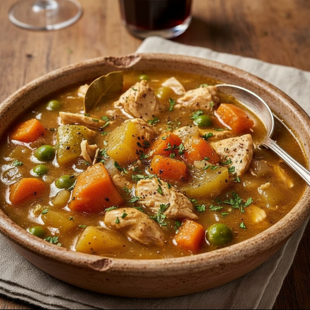 - Garnish: Ladle the hot Chunky Chicken and Vegetable Stew into bowls.