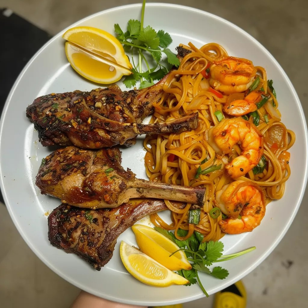 Prepare for a truly special and bold culinary experience with these Decadent Lamb Chops with Creamy Garlic Shrimp Noodles! This restaurant-style dish brings together the best of land and sea: tender, perfectly seared lamb chops, intensely flavored with aromatic herbs and spices, are paired with silky, luscious noodles tossed in a rich, creamy sauce studded with succulent shrimp and fragrant garlic. It’s a harmonious blend of rich, savory, and subtly spicy notes that feels incredibly indulgent yet is surprisingly achievable at home. Perfect for a romantic dinner, an impressive weekend treat, or any occasion that calls for something extraordinary, this dish promises to tantalize your taste buds and leave a lasting impression.