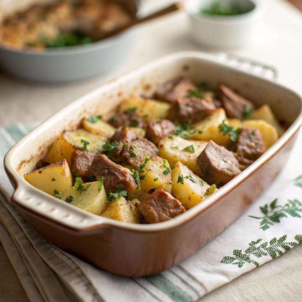 Warm your soul and fill your home with irresistible aromas with this hearty Spiced Pork and Potato Casserole. This dish is the epitome of comforting home cooking, featuring tender chunks of pork, infused with a blend of savory spices, baked slowly with soft, flavorful potatoes in a rich, savory liquid. Cooked to perfection in a single casserole dish, it’s a fuss-free meal that allows the ingredients to meld beautifully, creating deep, satisfying flavors with minimal active effort. Ideal for chilly evenings, family dinners, or any occasion that calls for a deeply satisfying and nourishing meal, this casserole is a true crowd-pleaser that delivers big on taste and warmth.