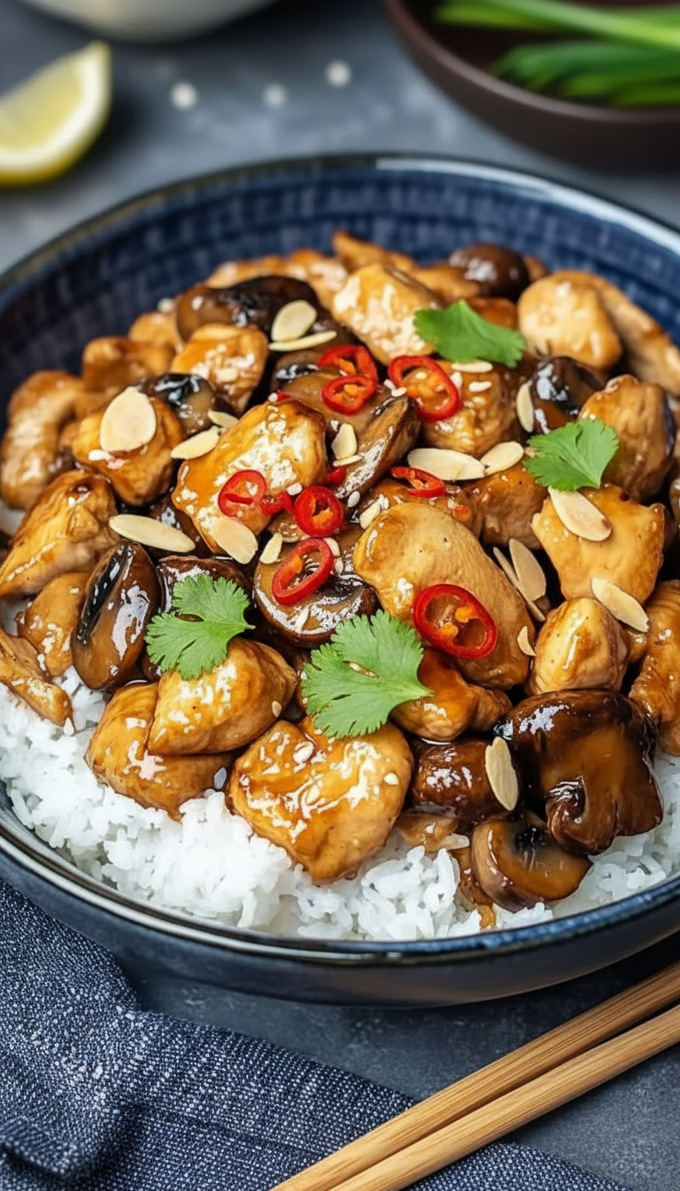 Whisk yourself away to a world of vibrant flavors and satisfying textures with this incredible Sweet & Savory Garlic Teriyaki Chicken and Mushroom Stir-Fry! This dish is a true weeknight wonder, bringing together tender, bite-sized pieces of chicken and earthy mushrooms, all coated in a luscious, homemade garlic teriyaki sauce. Served over a bed of fluffy white rice and garnished with fresh green onions and sesame seeds, it’s a complete meal that’s bursting with umami, sweetness, and a hint of garlic. Quick to prepare, endlessly customizable, and guaranteed to please even the pickiest eaters, this stir-fry offers all the deliciousness of your favorite takeout with the freshness and health benefits of a home-cooked meal. It’s a flavorful journey in every spoonful!
