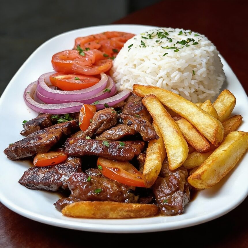 Lomo Saltado is one of Peru’s most iconic and beloved dishes, representing the perfect fusion of Peruvian and Chinese flavors. This bold stir-fry combines juicy strips of beef with red onions and tomatoes, all tossed in a savory soy-vinegar sauce and served alongside fluffy white rice and crispy golden fries.…