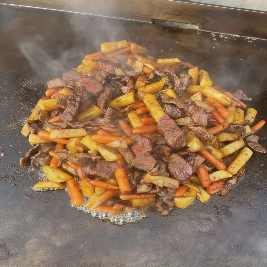Get ready for an explosion of flavor and texture with this dynamic Steak & Sausage Stir-Fry, perfectly cooked on your Blackstone griddle! This dish brings together tender strips of steak, smoky sausage, and perfectly golden potatoes and carrots, all seasoned to perfection. The high, even heat of the griddle creates…