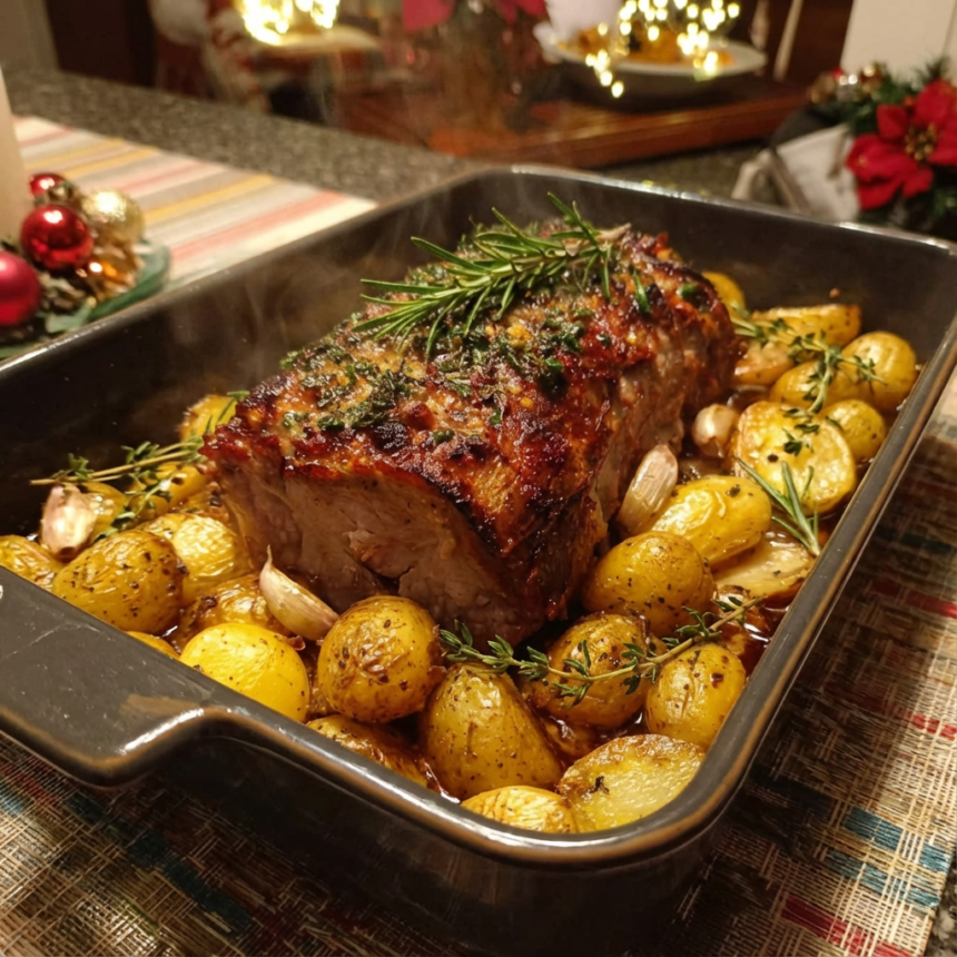 Indulge in the simple elegance and robust flavors of this Roasted Pork Loin with Garlic Potatoes. This dish is the epitome of comfort food, offering tender, succulent pork loin infused with aromatic garlic, rosemary, and thyme, perfectly complemented by crispy-on-the-outside, fluffy-on-the-inside garlic-roasted baby potatoes. Cooked together in one pan, this…