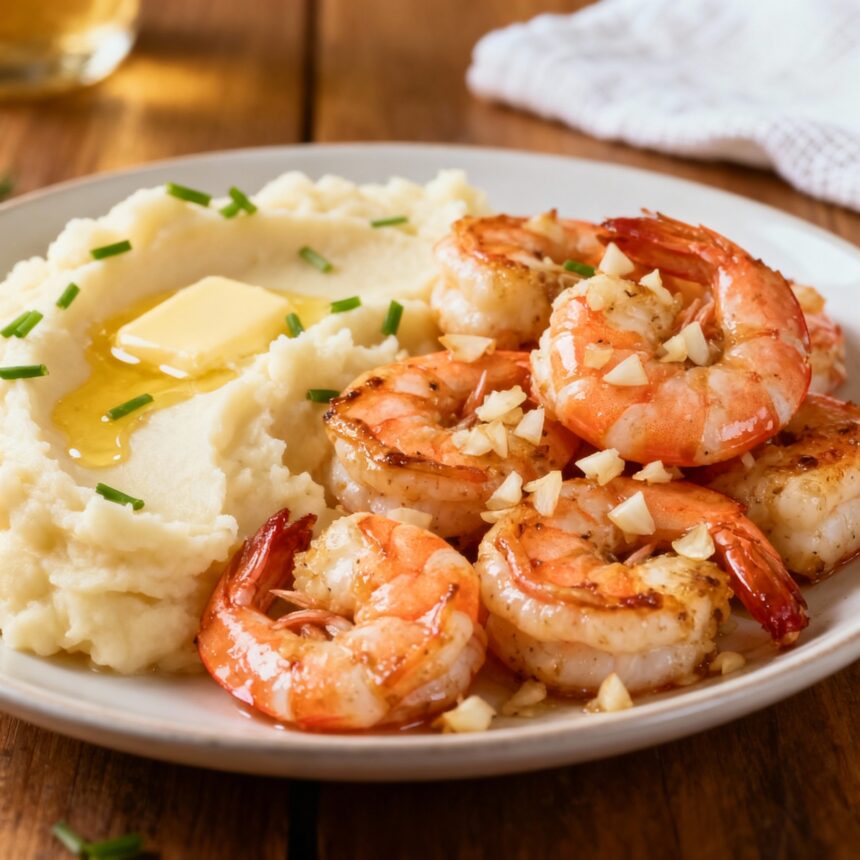 Sizzling Garlic Butter Shrimp & Creamy Mashed Potatoes