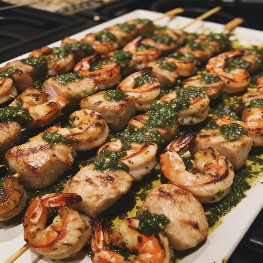 Grilled Surf & Turf Skewers with Zesty Chimichurri