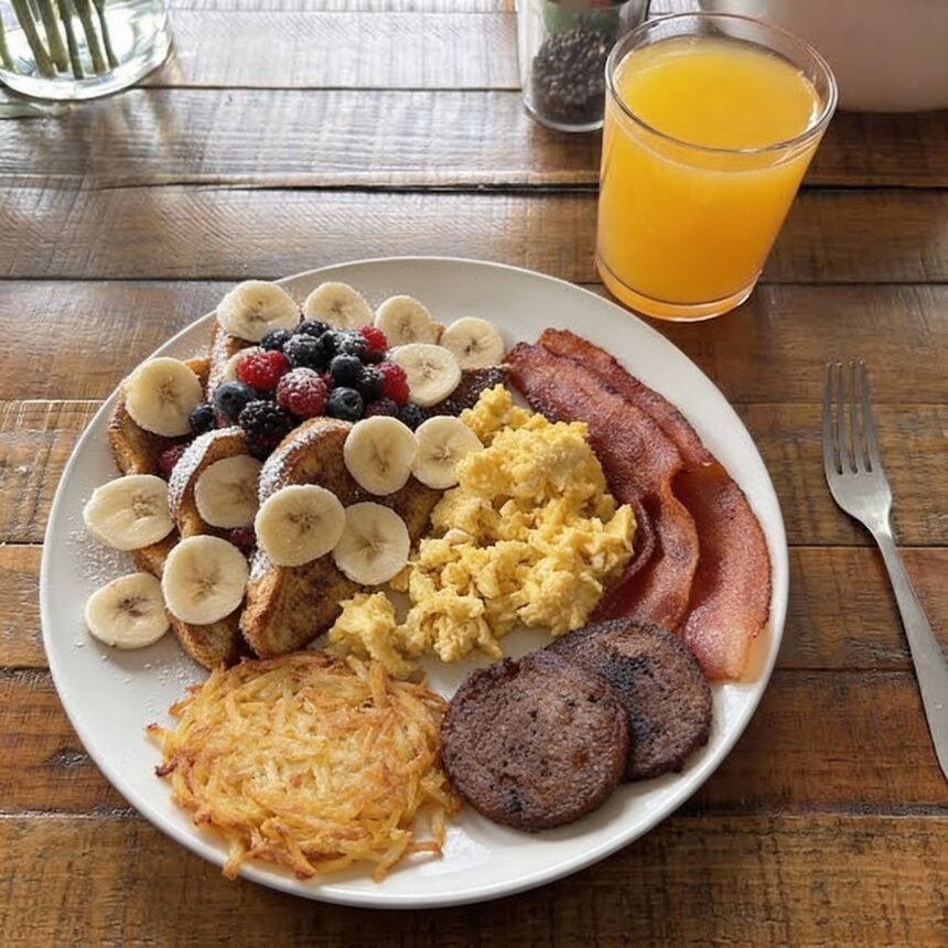 Wake up to a feast withThe Ultimate Hearty Breakfast Platter, a generous and satisfying spread th Ingredients For the French Toast: For the Scrambled Eggs: For the Crispy Bacon: For the Sausage Patties: Step-by-Step Instructions: Tips, Variations, and Storage: Pairings: Quick Info: