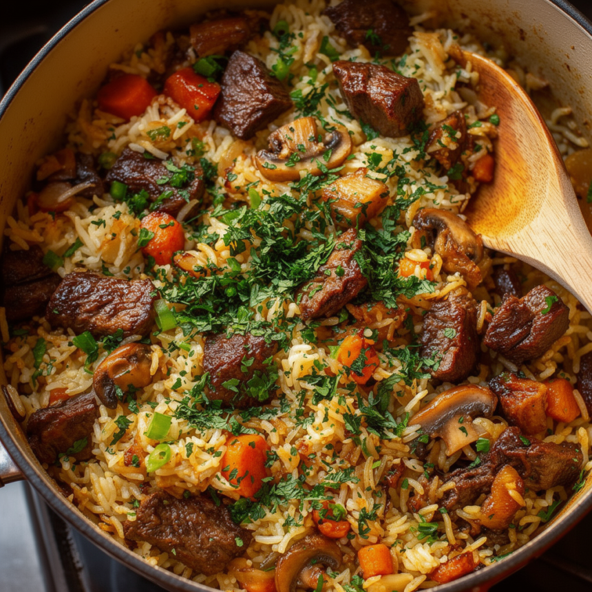 Savory Beef Mushroom Rice Pilaf