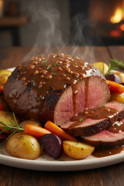 Roasted Ground Moose with Root Vegetables and Rich Brown Gravy