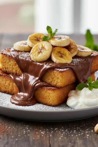 Nutella and Flambéed Banana French Toast Dessert