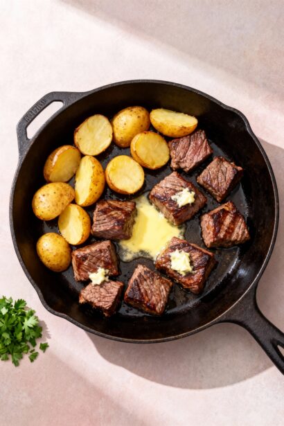 Garlic Butter Steak Bites with Crispy Baby Potatoes
