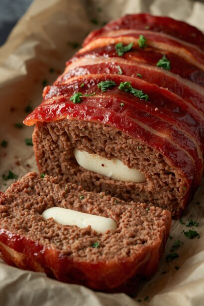 Mozzarella Stuffed Bacon-Wrapped Meatloaf