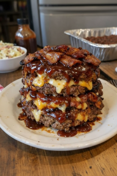 Smoked Bacon Triple-Cheese Cheeseburger Meatloaf Stack
