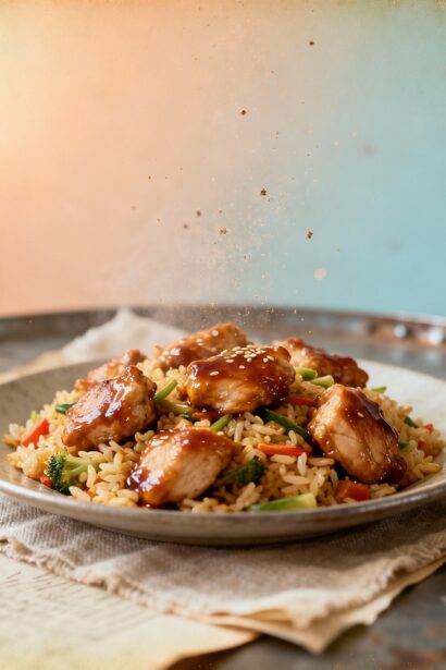 Honey-Garlic Chicken Bites with Veggie Fried Rice