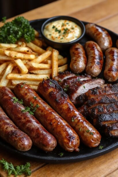 Hearty Grilled Sausage Platter with Crispy Fries
