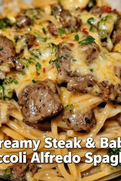 Creamy Steak & Baby Broccoli Alfredo Spaghetti